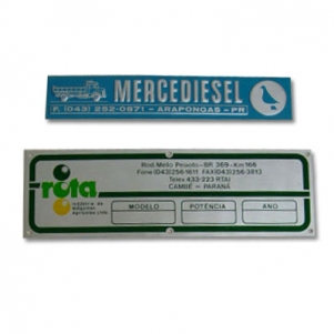Placas Metálicas (Alumínio) de divulgação para Equipamento Rodoviários, Industriais e demais segmentos.