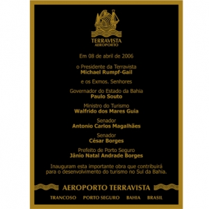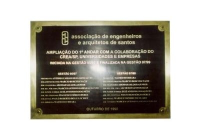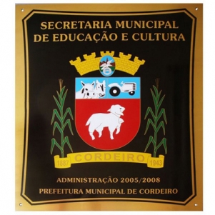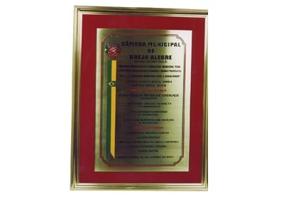 Com Madeira Envernizada, sobreposta em paspatour e chapa latão, letras pode ser alto ou baixo relevo, tarjas coloridas, brasões, símbolos ou logomarcas nas cores oficiais.